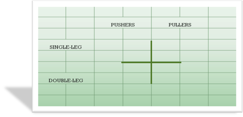 Our method of classifying athletes is rooted in individual movement solutions. To begin, we will determine whether an athlete is anterior chain (push) or posterior chain (pull) dominant. In addition to this, we also determine whether an athlete is single or double-leg dominant.